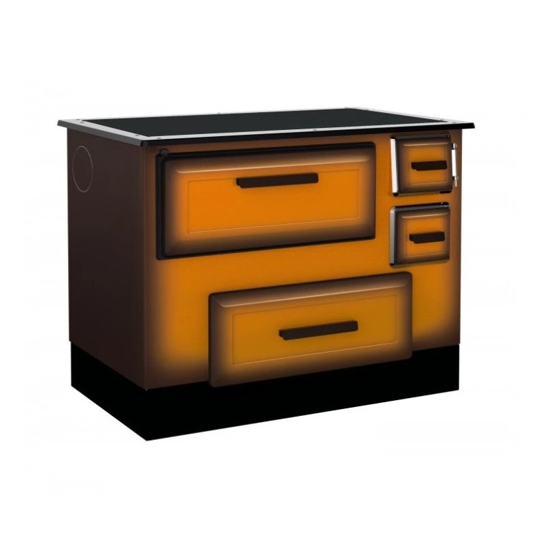 Velká trouba 58 l, ve spodní části je umístěný šuplík na dostatečnou zásobu paliva, plášť je z kvalitního smaltovaného plechu s odolností až do 800°C.