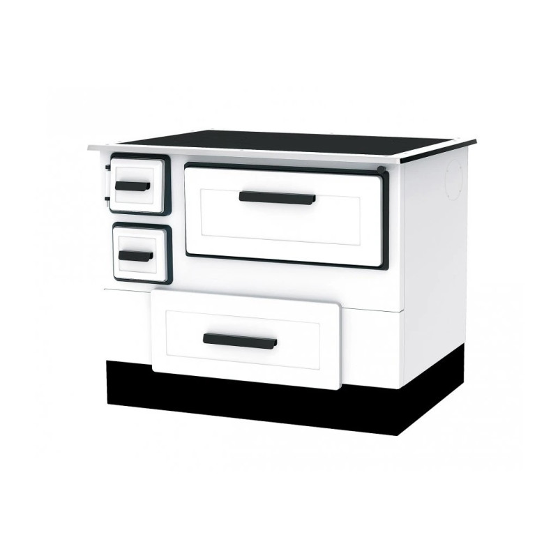 Velká trouba 58 l, ve spodní části je umístěný šuplík na dostatečnou zásobu paliva, plášť je z kvalitního smaltovaného plechu s odolností až do 800°C.
