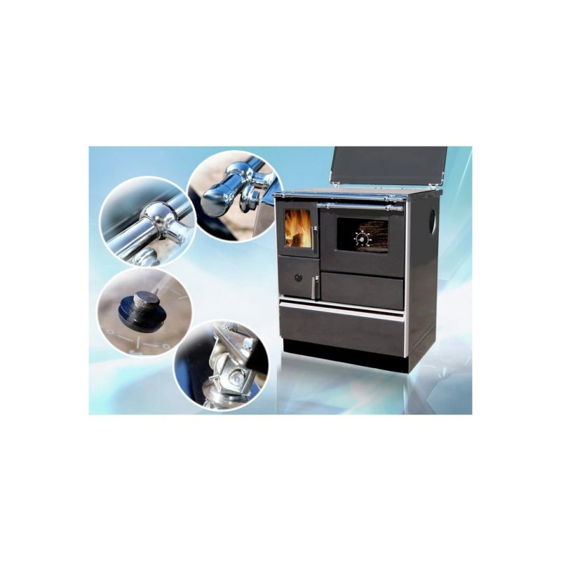 Regulace primárního a sekundárního spalování je umístěna dvířkách popelníku a topeniště. Ve spodní části je umístěný šuplík na dostatečnou zásobu paliva, plášť je z kvalitního smaltovaného plechu s odolností až do 800°C.