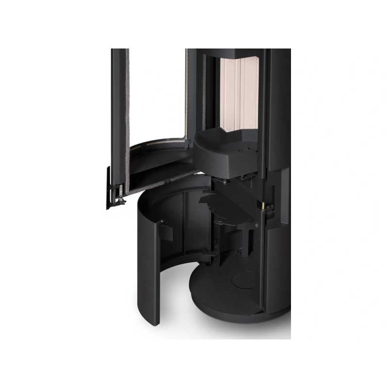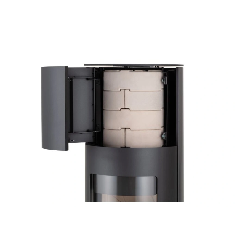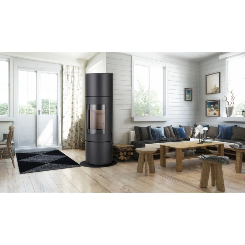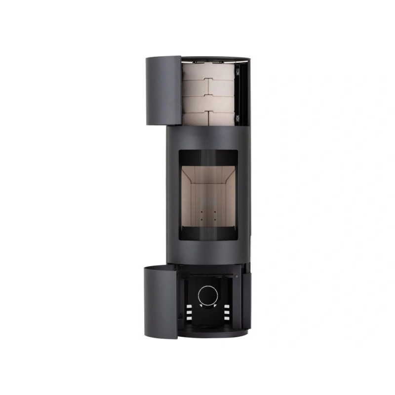 Elegantní a kompaktní krbová kamna kruhového půdorysu, vhodná pro každý interiér. Kamna skvěle vyniknou i uprostřed místnosti. Součástí dodávky je 64Kg akumulačních prstenců. Elegantní a kompaktní krbová kamna kruhového půdorysu, vhodná pro každý interiér. Kamna skvěle vyniknou i uprostřed místnosti. Součástí dodávky je 64Kg akumulačních prstenců. Krbová kamna jsou vhodná pro nízkoenergetické domy. Disponují systémem centrálního přívodu externího vzduchu. Odvětrávaná designová klika umožňuje manipulaci během topení. Dveře je možné aretovat v poloze otevřeno. Ve standardu je možné zapojení horního nebo zadního odvodu spalin. Díky sekundárnímu přívodu vzduchu je sklo dvířek omýváno, a tak nedochází k usazování nečistot. Spalovací komora je vyložena betonovými tvarovkami. Regulaci primárního a sekundárního přívodu vzduchu lze řídit jediným ovládacím prvkem.