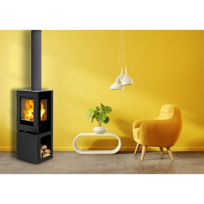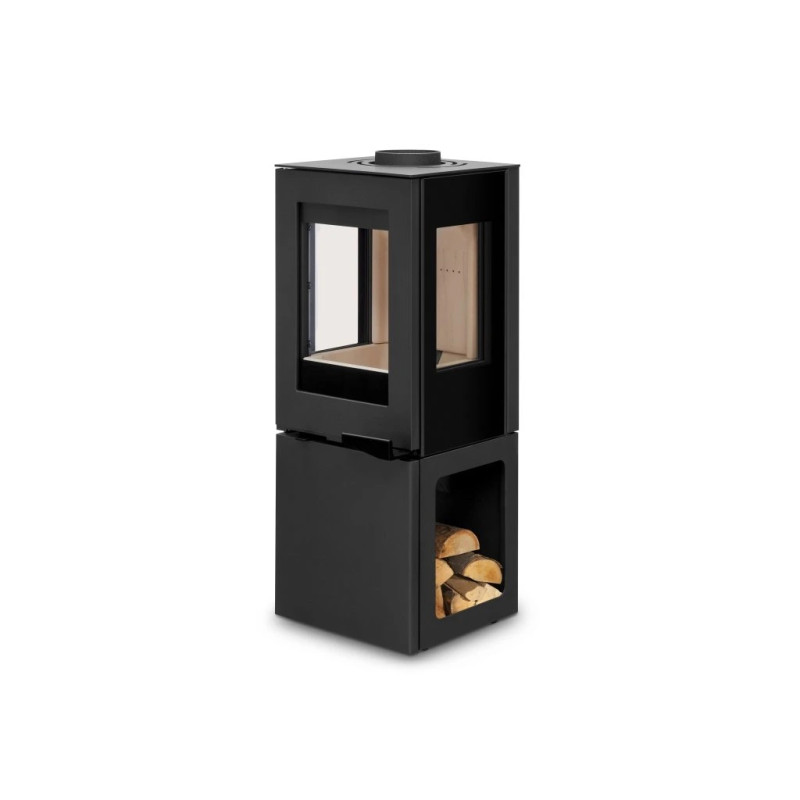 Krbová kamna FORNAX zaujmou svou subtilností, prostorovým pohledem na oheň díky třístrannému prosklení, líbivým designem kubického tvaru a užitečným podstavcem pro ukládání dřeva nebo příslušenství. Mohou být instalována s podstavcem nebo samostatně. Vhodná do nízkoenergetických domů. Elegantní a kompaktní krbová kubického tvaru, vhodná pro každý interiér. Krbová kamna jsou vhodná pro nízkoenergetické domy. Disponují systémem centrálního přívodu externího vzduchu. Odvětrávaná designová klika umožňuje manipulaci během topení. Dveře je možné aretovat v poloze otevřeno. Ve standardu je možné zapojení horního nebo zadního odvodu spalin. Díky sekundárnímu přívodu vzduchu je sklo dvířek omýváno, a tak nedochází k usazování nečistot. Spalovací komora je vyložena betonovými tvarovkami. Regulaci primárního a sekundárního přívodu vzduchu lze řídit jediným ovládacím prvkem.