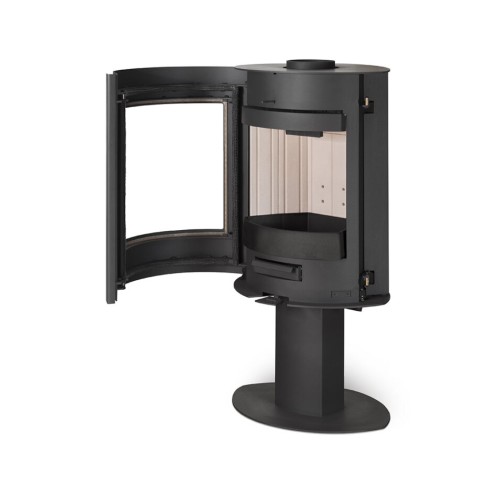 Na první pohled neotřelá krbová kamna VELA, která jsou jedinečná nejen svým designem, ale i možností otáčet topeniště až o 120°. Krbová kamna VELA eliptického půdorysu na noze, integrovanou designovou klikou a bohatým prosklením pro krásný zážitek z ohně. Kamna vhodná do nízkoenergetických domů značky AmbiFire. Minimalistická, ale zároveň dominantní svým tvarem. Otočná krbová kamna VELA dokonale padnou do prostoru, kde nezaberou ani o kousek víc místa, než je potřeba. Elegantní a kompaktní krbová kamna eliptického půdorysu s bohatou prosklenou čelní plochou, vhodná pro každý interiér. Kamna skvěle vyniknou i uprostřed místnosti. Krbová kamna jsou vhodná pro nízkoenergetické domy. Disponují systémem centrálního přívodu externího vzduchu. Odvětrávaná SKRYTÁ designová klika umožňuje manipulaci během topení. Dveře je možné aretovat v poloze otevřeno. Ve standardu je možné zapojení horního nebo zadního odvodu spalin. Díky sekundárnímu přívodu vzduchu je sklo dvířek omýváno, a tak nedochází k usazování nečistot. Spalovací komora je vyložena betonovými tvarovkami. Regulaci primárního a sekundárního přívodu vzduchu lze řídit jediným ovládacím prvkem.