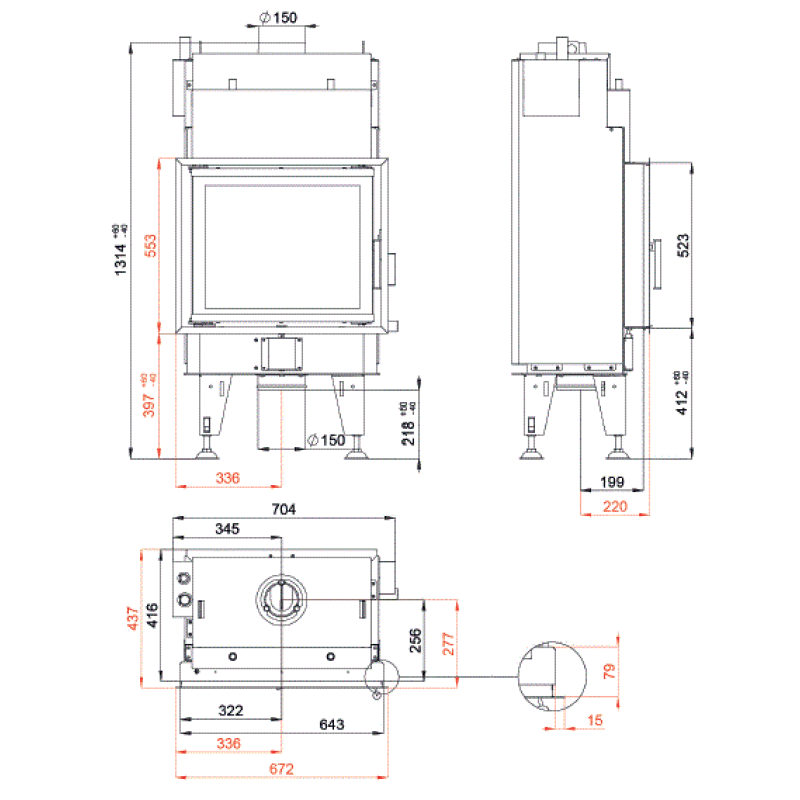 Revoluční teplovodní krbová vložka s trojsklem a inovativním řešením přívodu vzduchu pro spalování. Je vybavena novým systémem oplachu skla spočívající ve vnitřním chlazení speciálního trojskla. Tím zajišťuje minimální předání tepla přes sklo do prostoru a maximálně zvyšuje výkon výměníku. Inovativní řešení konstrukce teplovodního výměníku dává možnost jeho mnohem snazšího čištění z topeniště, díky tomu odpadá i nutnost instalace revizního otvoru. Ohniště je vyloženo akumulačním materiálem Carcon.