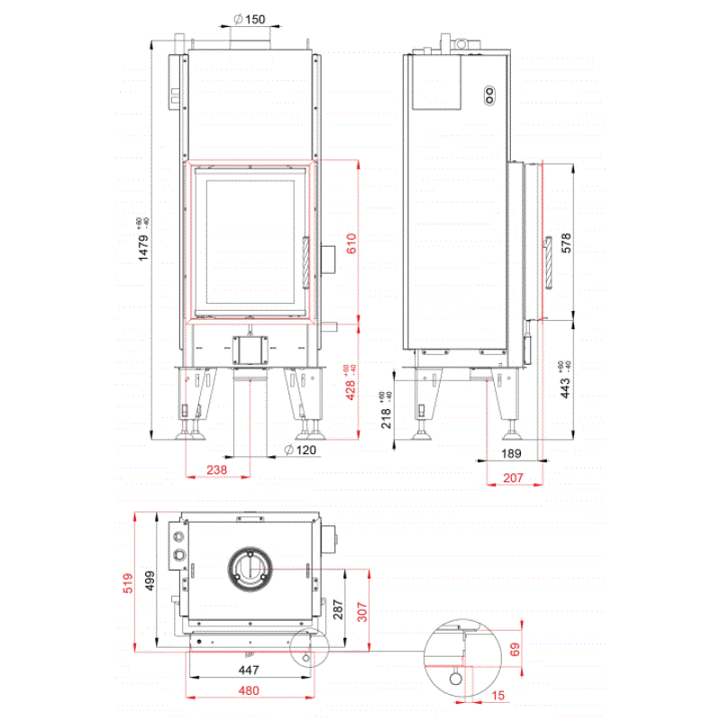 Díky ohništi vyloženému akumulační výstelkou, Carconem, který byl vyvinut speciálně pro naši firmu, je dosaženo vysoké čistoty a účinnosti spalování a příjemného pohledu do ohně. Tělo krbové vložky je pokryto izolací a vložka má dvojité prosklení již ve standardu. I díky tomu je dosaženo maximální efektivity tepla předaného do výměníku.