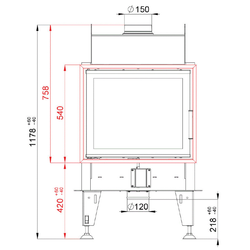 - Průhledová krbová vložka s dvířky otevíranými do strany.