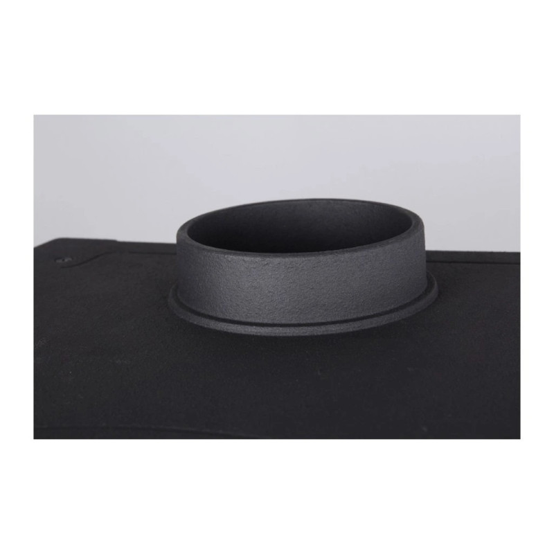 Horní plotna, dvířka s rámem, hrdlo kouřovodu, dno topeniště a rošt jsou vyrobené z litiny.