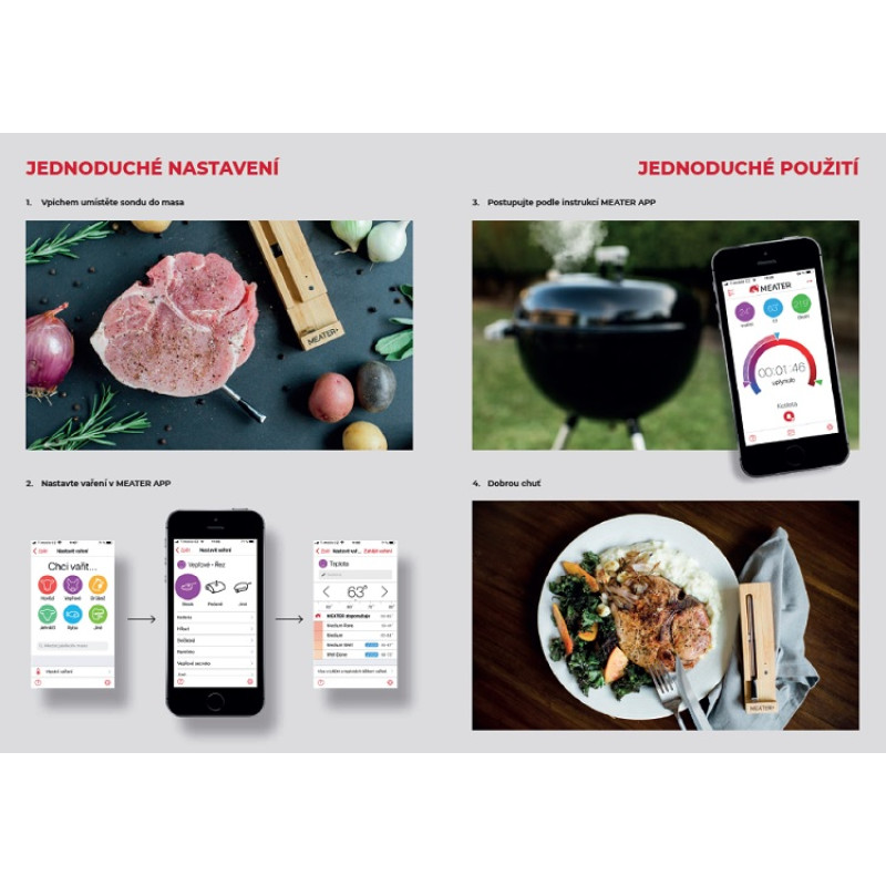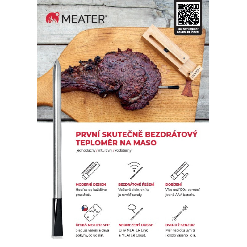 Meater: Revoluce v měření teploty masa při grilování - Meater je chytrá bezdrátová termosonda, která přináší zcela nový rozměr grilování a pečení. Díky této inovativní technologii můžete mít dokonalou kontrolu nad teplotou masa a zajistit si tak vždy šťavnaté a dokonale propečené pokrmy.
