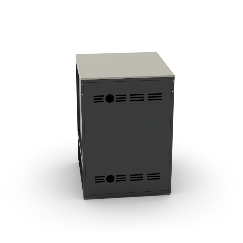 Skříň se vyznačuje pevným tělem vyrobeným z nerezové oceli s práškovým nástřikem a certifikací Qualicoat. Díky tomu je vyrobena tak, aby odolala dešti, slunci a každodennímu opotřebení, aniž by rezavěla nebo vybledla. Dvířka s tichým zavíráním dodávají spotřebiči luxusní vzhled a zároveň chrání integrovaný spotřebič.