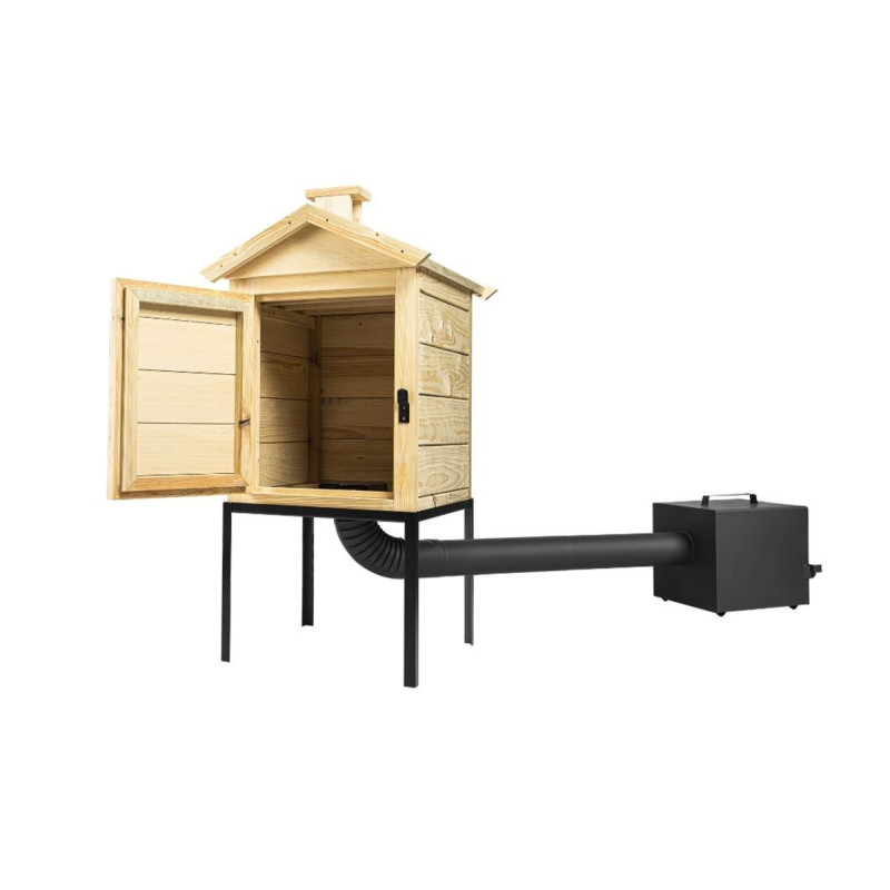 - Kvalitní dřevěná konstrukce: Udírna je vyrobena ze smrkového dřeva, které zajišťuje dlouhou životnost a stabilitu. Dřevo zároveň propůjčuje udírně tradiční a esteticky příjemný vzhled, který skvěle zapadne do vaší zahrady.