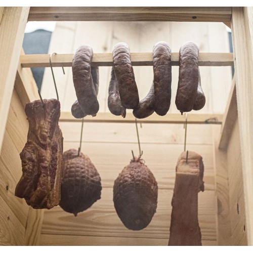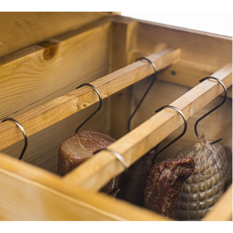 - Autentická chuť a aroma: Dřevěná konstrukce zajišťuje přirozenou izolaci a optimální podmínky pro pronikání kouře do uzenin. Výsledkem je nezaměnitelná chuť a aroma, které ocení každý gurmán.
