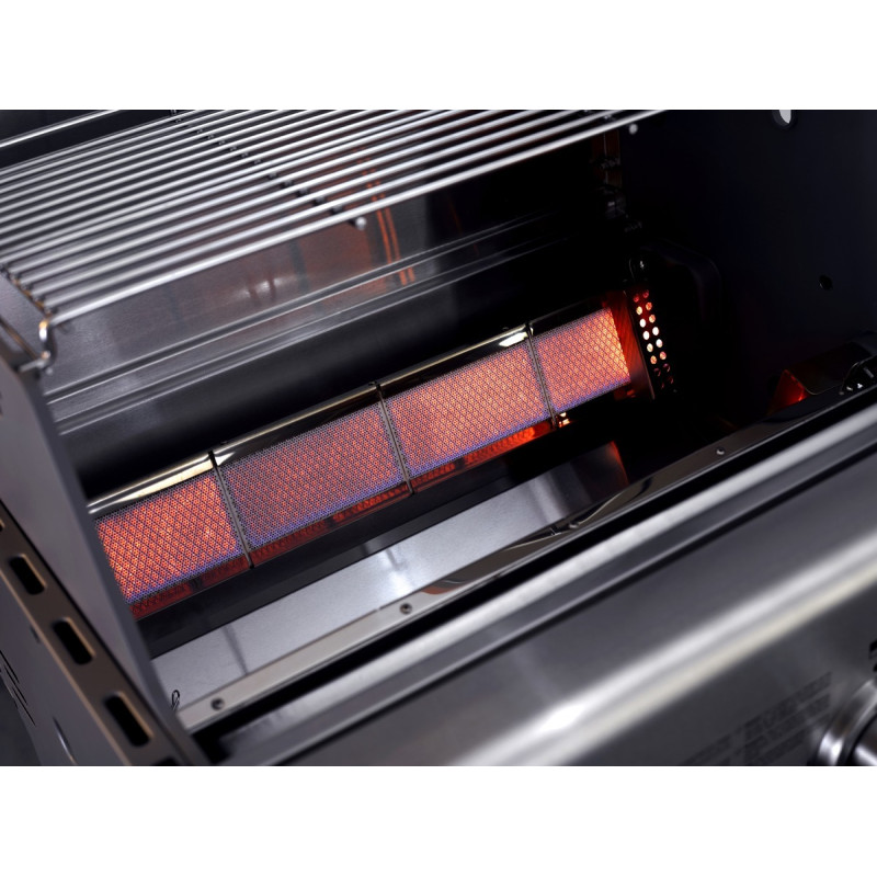 Velmi kvalitní a designově zdařilý gril s unikátními infračervenými hořáky. Technologie Crossray využívá čtyř horizontálně umístěných infračervených hořáků s velkým výkonem, které zajišťují zcela rovnoměrný ohřev grilovaných pokrmů. Infračervené teplo prochází grilovaným pokrmem a udržuje jej uvnitř šťavnatým. Infračervené teplo umožňuje grilování s intenzitou dřevěného uhlí s komfortem úsporného grilování na plynovém grilu. To vše bez připalování grilovaných pokrmů, které způsobuje hořící omastek. Vestavná verze pro originální obestavbu venkovní grilovací kuchyně s instalací do pracovní desky. Pro instalaci je nutno použít montážní konzoli, která je součástí dodávky grilu. Doporučujeme pevné připojení plynu. Grilování na grilu Crossray je snadné a zaručuje excelentní výsledky.