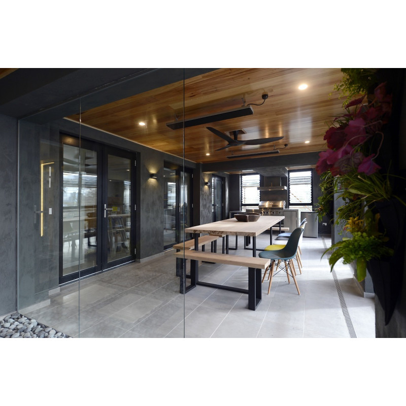 Kvalitní a velmi elegantní topidlo s vysokou intenzitou tepelného záření pro kryté venkovní a interiérové aplikace. Zářič je vyráběn v elegantním černém provedení, které kontrastuje s barvou stropu, který je v drtivé většině v bílé barvě. Profil unikátní topné plochy zářiče ze speciálního hliníku s keramickým povrchem vyzařuje teplo velmi efektivně a účinně. Tepelný zářič HEATSTRIP Design lze instalovat již ve výšce 2,1 m. HEATSTRIP Design zářič je velmi tenký - výška je jen necelých 5 cm. Zabírá tak velmi málo místa a působí odlehčeně a nenápadně. Nedominuje interiéru, ale skvěle jej doplní a navíc poskytne příjemné teplo. Topidlo HEATSRTRIP Design lze instalovat mnoha způsoby. Montážní konzole s možností naklápění je součástí dodávky topidla. Možná je instalace na různě dlouhé konzole, aby se přizpůsobily jakémukoliv interiéru a exteriéru. V rámci zachování maximální čisté linie lze zářiče HEATSTRIP Design zabudovat do podhledu či stropní konstrukce. K tomu poslouží samostatně prodejný instalační rám. Díky nízké hmotnosti lze zářič instalovat např. přímo na ramena slunečníků.