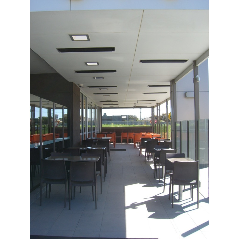 Inovativní design zářičů HEATSTRIP umožňuje komfortní a rovnoměrný rozptyl tepla z celé plochy zářiče s minimálním provozními náklady. Téměř 90% tepla je směřováno do místa ohřevu, zatímco zbylých 10% tepla je vyzařováno jako teplo konveční. Tato vysoká účinnost je garancí vynikajících topných hodnot. Středněsálavé infračervené zářiče HEATSTRIP Indoor mají krytí IP55 a jsou speciálně navrženy pro použití v interiéru.