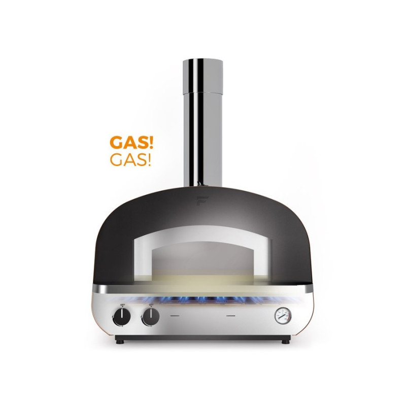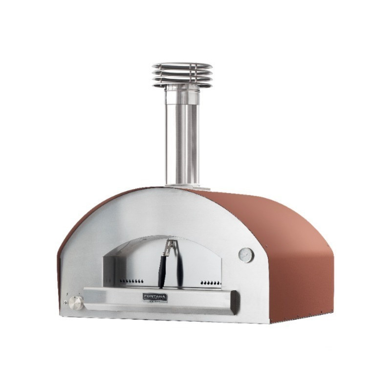 Vysoce výkonná hybridní rodinná pec s pečící plochou 80 x 60 cm, umožňující topení plynem nebo dřevem. Dokonalé zaoblení klenby usnadňuje cirkulaci vzduchu. Fontana je jediný výrobce, který umisťuje plynový hořák na dno, nikoliv na stranu trouby, čímž dochází k ideálnímu rozptylu tepla v kratším čase. Důmyslný odvod kouře nutí teplo zůstat delší dobu v pečící komoře, čímž dochází ke snížení spotřeby plynu. Toto vše jsou výsledky špičkového inženýrství, které odpovídá tradici italské kuchyně. Užitečná varná plocha 68x60 cm je platformou pro výkony identické s výkony profesionální trouby. Pec Magnifuoco je vyrobena z lakované oceli a nerezové oceli. Je vybavena komínem odolným proti dešti, ocelovými dvířky s rukojetí, která se nezahřívá a teploměrem. Uvnitř pece se nachází extra silný deflektor, který skvěle rozptyluje teplo a zároveň chrání ocelovou klenbu před nadměrným tepelným namáháním. Vysoký výkon pece je podpořen silnou izolací klenby, což je zárukou dosažení vysokých teplot během kratší doby s menší spotřebou paliva.