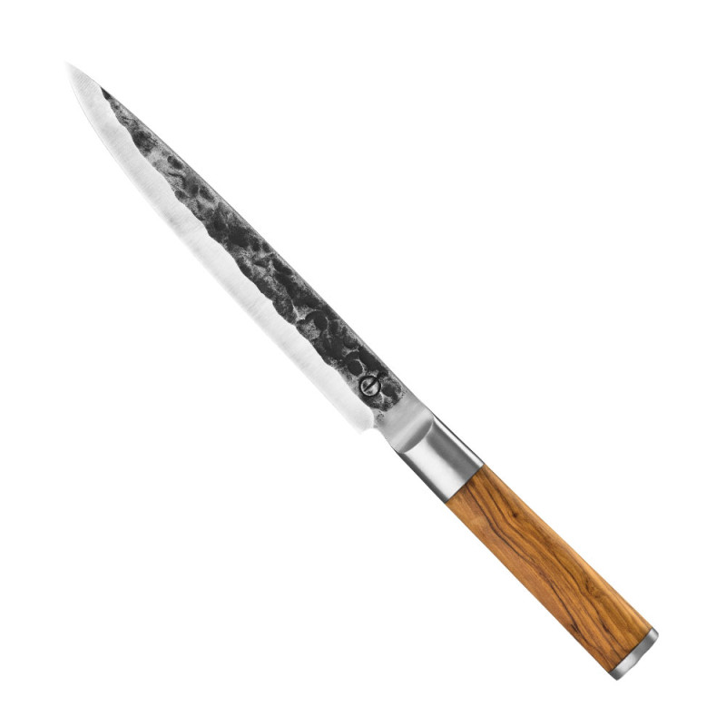 Řada OLIVE v sobě kombinuje robustní provedení, jemnou eleganci a styl, který ji dodává olivové dřevo. Zaoblená dřevěná rukojeť je velmi příjemná pohodlná pro držení. Upevnění čepele na konci rukojeti je vyvážené a nůž působí jako jeden celek.