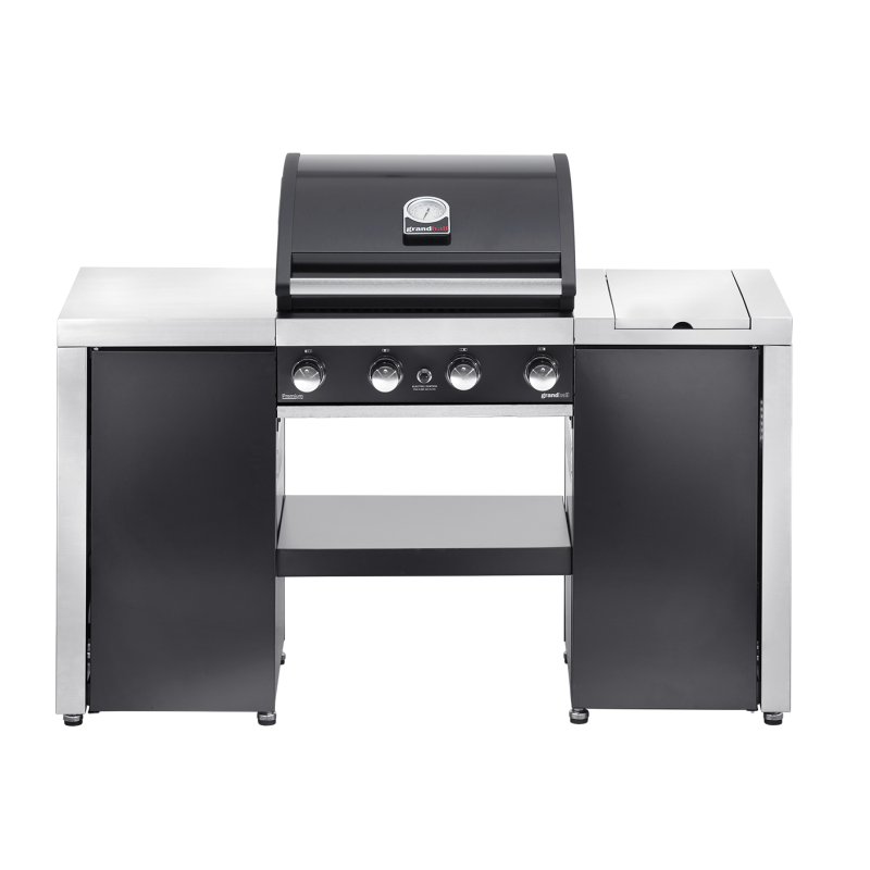 Modulové skříňky jsou výškově identické jako plynový gril GrandHall Premium G4 Island. Gril tak můžete snadno rozšířit o samostatně stojící modulové skříně a získat tak další pracovní plochu, úložný prostor, mycí centrum nebo skříň s lednicí.