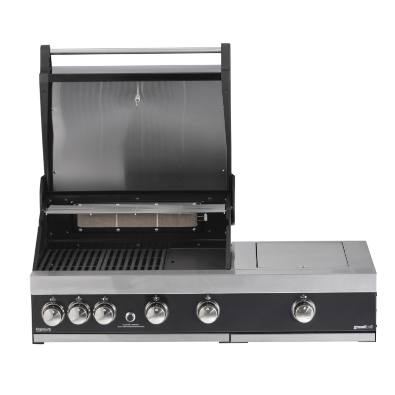 Kompaktní sada vestavného plynového grilu Premium G4 a samostatného infrahořáku Sear určená pro vestavbu do venkovní kuchyně. Kvalitní gril je vybaven čtyřmi nerez hořáky a nově zadním infračerveným hořákem pro opékání na otočném rožni. Gril je svojí velikostí ideální pro rodinné grilování, navíc za příznivou cenu. Obestavba grilu umožní vytvořit jedinečné grilovací centrum dle individuálních požadavků. Gril tvoří ucelenou sadu s infračerveným keramickým hořákem o max. výkonu 4,6 kW. Tato kombinace poteší zejména milovníky steaků, neboť pro jejich grilování je právě infračervený Sear hořák vhodný. Jelikož infračervený Sear hořák dosahuje podstatně vyšších teplot než hořáky uvnitř grilu, steaky se rychle zatáhnou a následně zprudka ugrilují, přičemž uvnitř zůstanou šťavnaté a vláčné. Kompaktní sada grilu s hořákem umožní snadnou instalaci a působí navíc čistým dojmem, neboť se jedná o jedno zařízení. Doposud totiž byla instalace grilu a hořáku prováděna odděleně, což kladlo vyšší nároky na související práce a materiály. Hořák je zapuštěn, tzn., že pokud není používán, může být místo nad ním (víko) používáno jako odkládací prostor. Údržba hořáku je snadná, neboť díky vysoké teplotě samo odhoří vše, co do něj skápne. Nadbytečný omastek je separován ve vysouvací zásuvce pod hořákem.