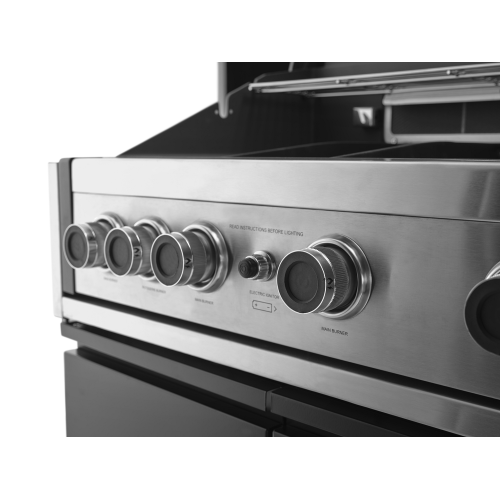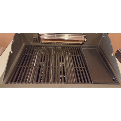 Elegantní, kvalitní, designově zdařilý a velmi dobře vybavený vestavný plynový gril s velkou grilovací plochou v exkluzivním designu pro náročné milovníky grilování. Čtyři výkonné nerezové hořáky doplňuje zadní infračervený hořák pro opékání pokrmů (drůbeže, gyrosu, hranolek) na otočném rožni (příplatkové příslušenství - není součástí dodávky grilu). Vylepšený systém distribuce tepla zajistí rovnoměrné šíření tepla napříč grilovacím roštem, což nejen zlepší výsledky grilování, ale rovněž minimalizuje riziko vznícení omastku či šťáv z grilovaných pokrmů. Gril je vybaven celolitinovým grilovacím roštem, přičemž rošt tvoří ze 3/4 grilovací mřížka a z 1/4 litinová plancha. Ta umožní grilovat pokrmy, které by standardním roštem propadly (zelenina, vejce, menší kousky masa, klobásky, mořské plody). Celkový elegantní vzhled grilu podrtrhují kovové ovládací knoflíky. Ke grilu je dodáván připojovací set s hadicí a montážní konzole. U vestavných grilů doporučujeme zhotovit pevný přívod plynu (PB). Vlastní obestavbu grilu lze vybavit dvířky z nerez oceli. Gril je vybaven 4 nožičkami, díky kterým jej lze, coby samostatně stojící gril, postavit na jakýkoliv pevný a nehořlavý povrch bez nutnosti jeho obestavby či zhotovení výřezu v pracovní desce.