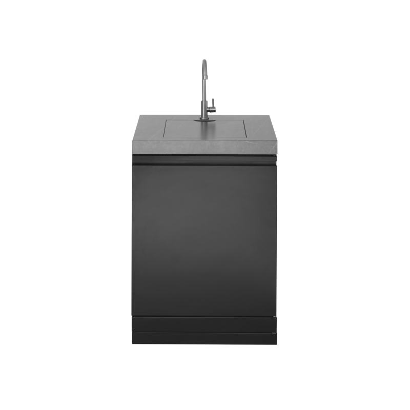 Užší ocelová modulová skřín v elegantní černé barvě s masivní kamennou deskou s nerez dřezem/umyvadlem je určena pro rozšíření skříně s grilem GrandHall Maxim G4, Elite G4, Crossray. Pokud máte rádi venkovní vaření na vaší terase nebo zahradě, tato modulová skříň by Vás měla oslovit. Díky této skříňce získá Vaše venkovní mycí centrum s dalším úložným prostorem. Skříň s umyvadlem lze rozšířit o modulovou boční skříň s kamennou pracovní deskou nebo modulovou boční skříň s lednicí.