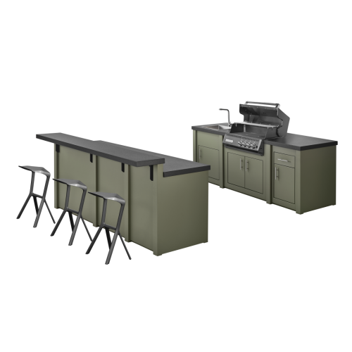 LIMITOVANÁ EDICE - Sestava luxusní venkovní kuchyně Grandpro EXCLUSIVE Crossray Black Line OLIVE GREEN s barem a lednicí - nutno objednat nejpozději v prosinci 2025.