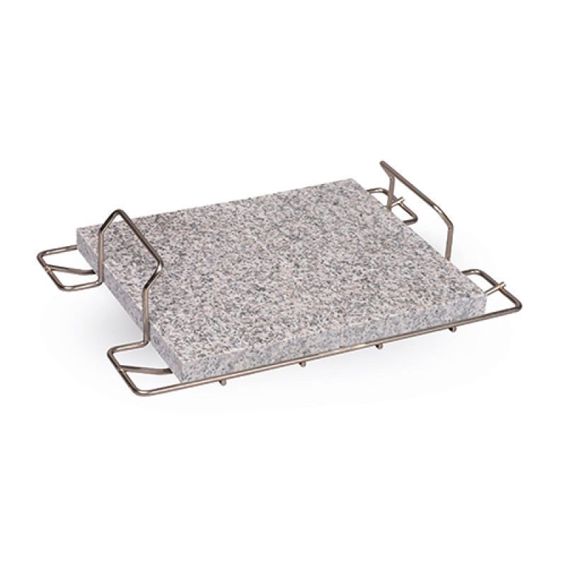 Grilovací dvoudílná deska se skládá z žulové desky o celkovém rozměru žuly 41 x 36 x 3 cm a ocelového nosiče 53 x 38 cm. Deska je dělená na polovinu z důvodů snížení napětí a prevence prasklin.