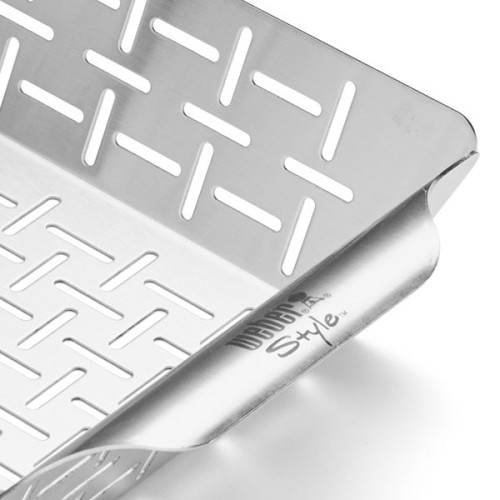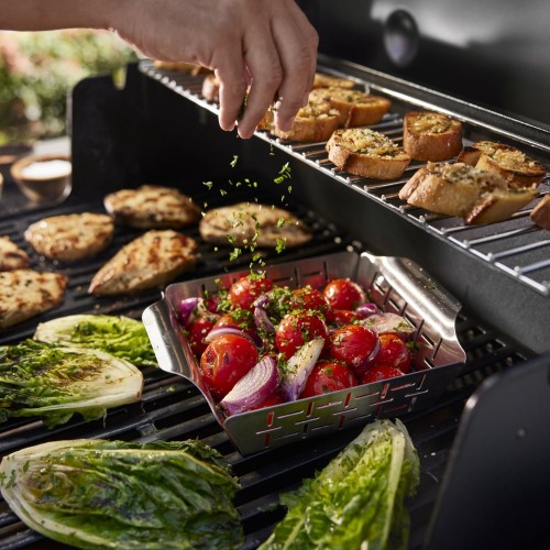 Grilovací koš Weber Deluxe na zeleninu je praktickým a stylovým doplňkem každého grilu, který vám umožní snadno a rychle připravit lahodnou a zdravou grilovanou zeleninu. Tento malý, ale šikovný koš je ideální pro přípravu různých druhů zeleniny, jako jsou cukety, papriky, rajčata nebo houby. Osmahněte a ugrilujte cibuli, papriky nebo jiné malé přílohy, zatímco steak se peče zároveň s tím. Grilovací koš pojme spoustu zeleniny, ovoce nebo krevet, zatímco dodává Vašemu jídlu nezaměnitelnou chuť kouře z grilu. Má zvýšené okraje a tak zelenina nikam "neuteče".