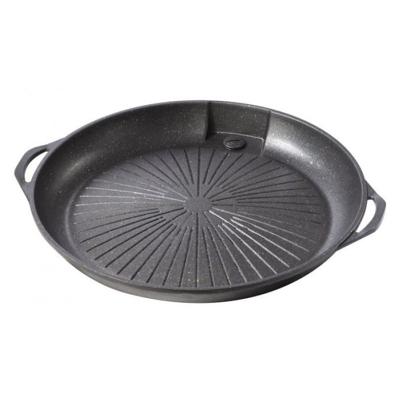 Hliníková grilovací deska s nepřilnavým povrchem, otvor pro odtok tuku.
