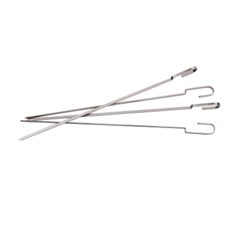 Nové grilovací jehly OUTDOORCHEF jsou vyrobeny z kvalitní nerezové oceli a pohodlně je můžete použít ve všech modelech grilů OUTDOORCHEF. Zploštělý tvar zajišťuje, že se jídlo při grilování/mani­pulaci neprotáčí.