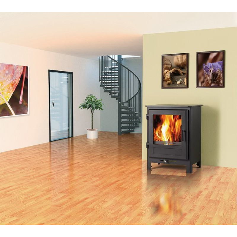 Sympatický společník do menších prostor. Design krbových kamen Uka jednoduše nestárne. Těleso v nadčasové černé barvě doplňují masivní litinová dvířka. Krbová kamna Uka jsou vyrobena z 10 mm silného plechu. Díky tomu si je budete moci užívat dlouhé roky.