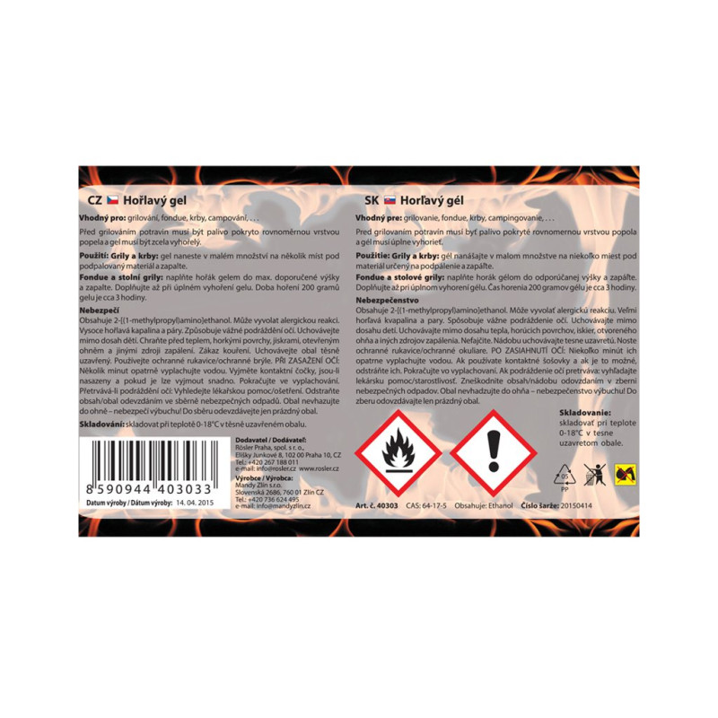Hořlavá gelová pasta v praktickém balení je určena pod nádoby na fondue, chafingy a stolní grily, kempování, grilování atd.