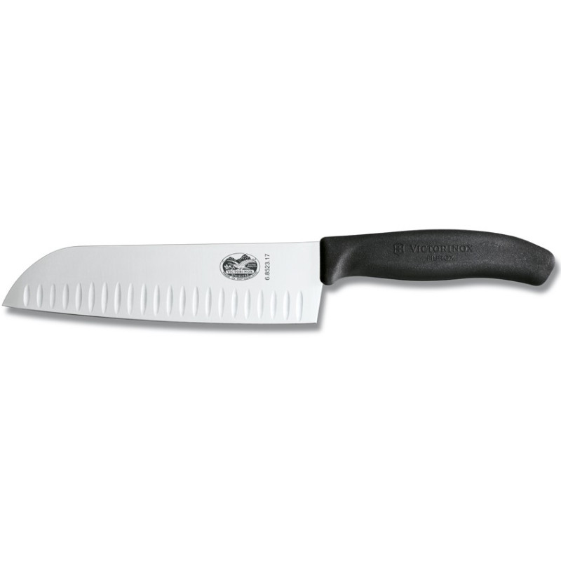 Přesné a pohodlné krájení umožní široká a dlouhá čepel s jemným ostřím a díky tomu lze během krájení rovnoměrně rozložit síly. Čepel je po stranách opatřena zářezy ve tvaru oválu a nakrájené kousky tak neulpívají na noži. Zkuste santoku nůž použít na krájení cibule!