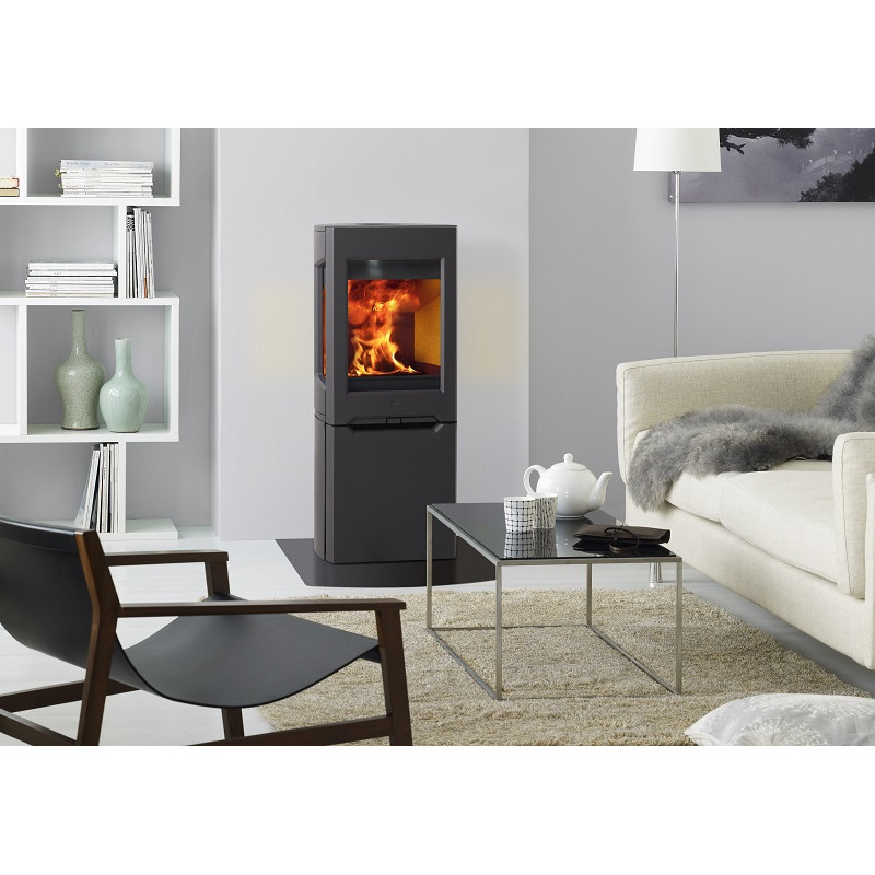 Řadu Jøtul F 160 tvoří šest základních variant s bočním prosklením nebo bez něj a s možností výběru litinového podstavce z několika typů. Model Jøtul F 165 má velké boční prosklení a praktický podstavec s litinovými dvířky, do kterého schováte všechny drobnosti, které se obvykle povalují po zemi kolem kamen. Na vnitřní stranu dvířek můžete přimontovat také krbové nářadí, vyráběné přímo na míru k tomuto modelu (příslušenství na objednávku).