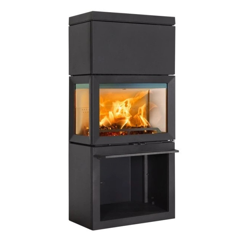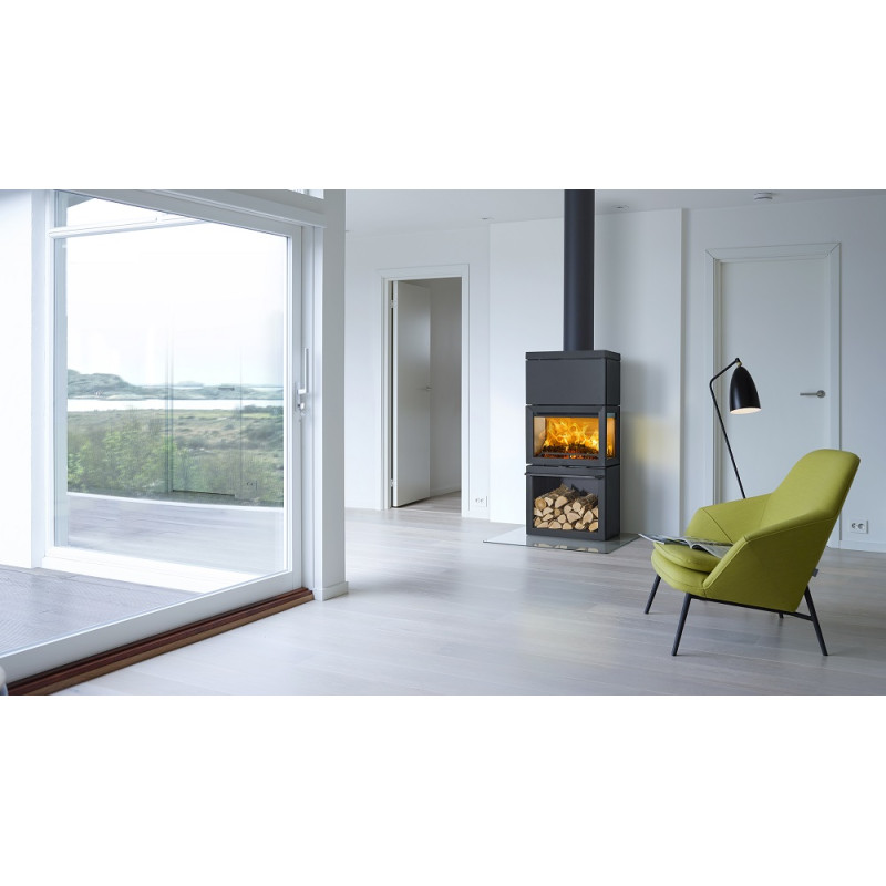 Jaké by to bylo, kdybyste v pohodlí Vašeho obývacího pokoji seděli u táboráku? Krbová kamna Jøtul F 520 s panoramatickým výhledem na oheň Vám to umožní zažít. Trojstranné prosklení s širokými bočními skly poskytuje fantastický pohled na plameny, který si můžete vychutnat z mnoha různých úhlů. Sklo je potažené speciálním povrchem, který ho udržuje stále čisté. Chytrá a intuitivní regulace přívodu vzduchu zajišťuje snadné zatápění a ovládání kamen. Díky vnitřnímu obložení topeniště bíle smaltovanými pláty kamna září, i když se v nich zrovna netopí. V jejich podstavci se ukrývá praktický úložný prostor na dřevo. Jøtul F 520 High Top jsou vysoká krbová kamna s horním nástavcem, který lze instalovat s akumulačními prstenci (příslušenství na objednávku). Akumulační prstence během topení ukládají teplo, které postupně uvolňují do místnosti až dalších 12 hodin poté, co oheň v kamnech dohoří.