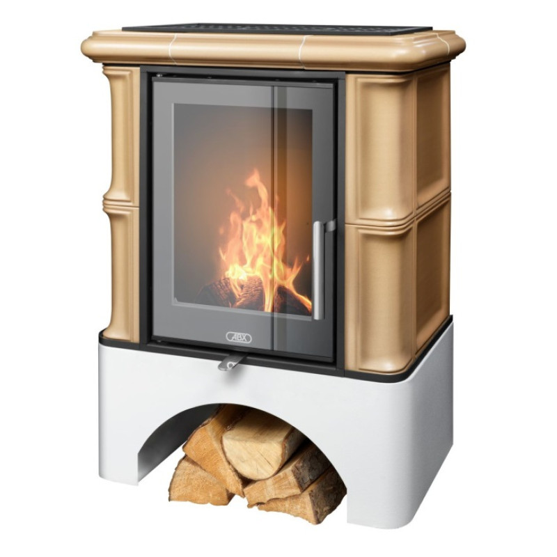Kachlová kamna ABX Bavaria exklusive, rovný sokl, černý korpus, opláštění kachle Naturbraun