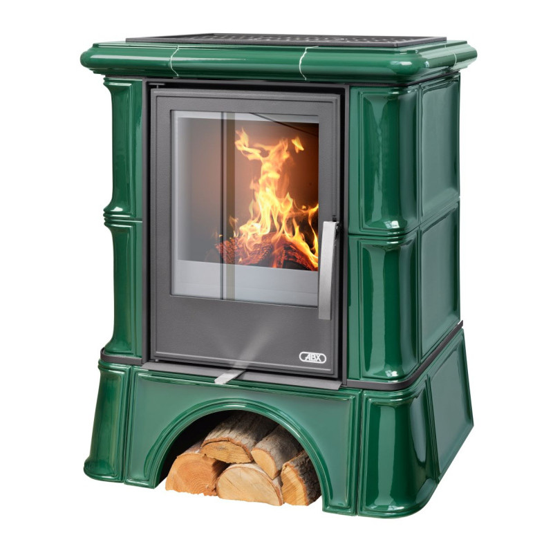 Kachlová kamna ABX Bavaria s výměníkem, kachlový sokl flaschengrün