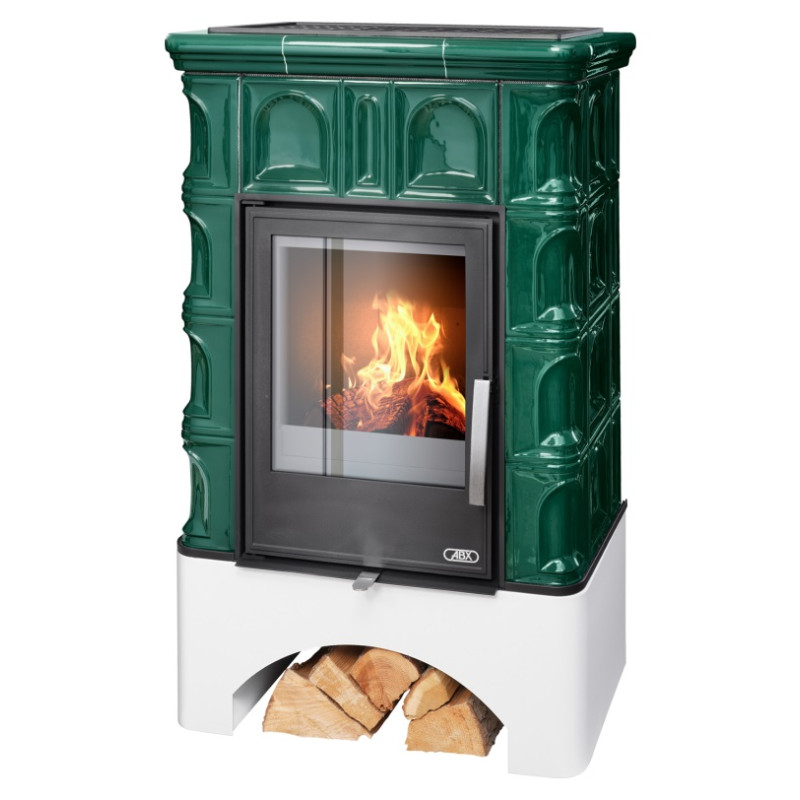 Kachlová kamna ABX Britania s výměníkem, černý korpus, opláštění kachle flaschengrün