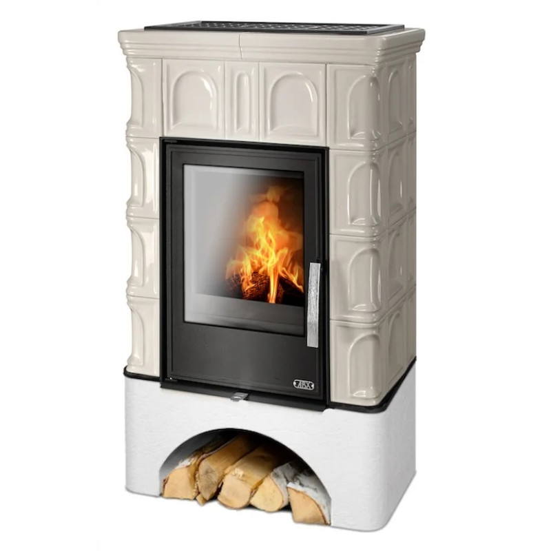 Kachlová kamna ABX Britania s výměníkem, černý korpus, opláštění kachle perle
