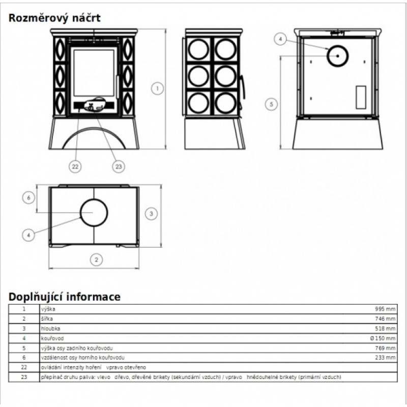 • Kamna mají přívod terciálního vzduchu a mají možnost připojení hrdla pro přívod vzduchu z exteriéru - ze zadní části nebo zespoda.