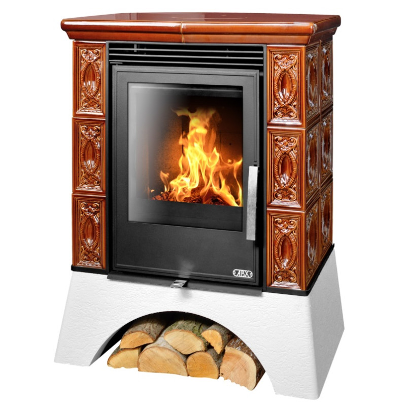 • Inovovaná kachlová kamna s externím přívodem spalovacího vzduchu ABX Helvetia na bílém ocelovém soklu s horní kachlovou deskou v provedení kachle hnědá, mají jmenovitý výkon 7 kW, regulovatelný v rozmezí 3.5 až 9 kW. Jsou schopna vytopit prostor o objemu 70 až 180 m3, spotřeba dřeva při jmenovitém výkonu je 2.1 kg/hod suchého dřeva.