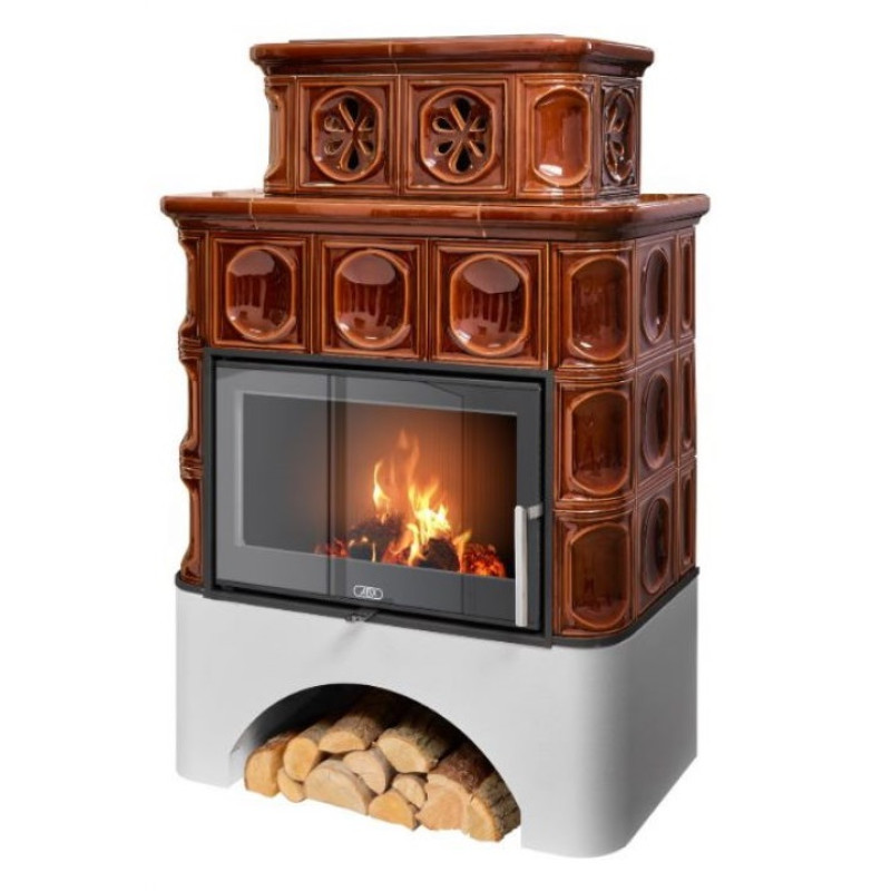 Kachlová krbová kamna ABX Karelie exklusive, rovný sokl, černý korpus, opláštění kachle hnědá