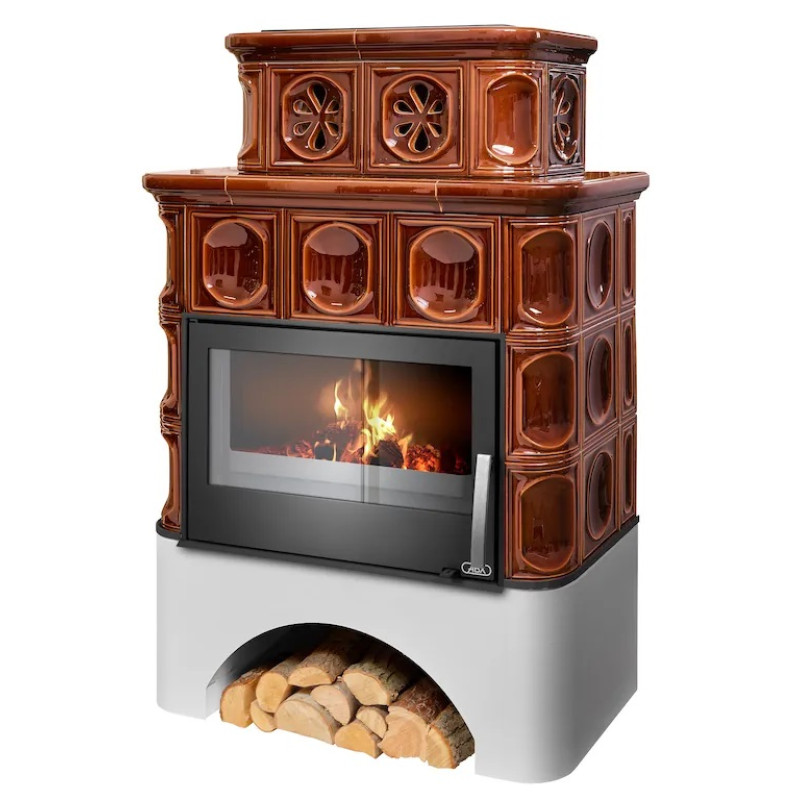 Kachlová krbová kamna ABX Karelie rovný sokl, černý korpus, opláštění kachle hnědá