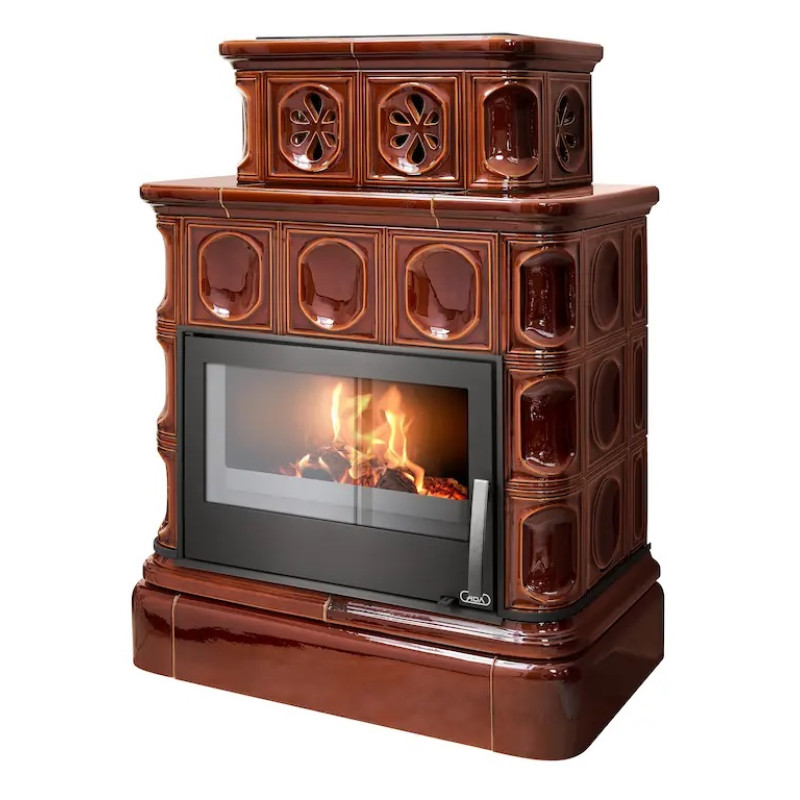 Kachlová krbová kamna ABX Karelie kachlový sokl černý korpus, opláštění kachle hnědá