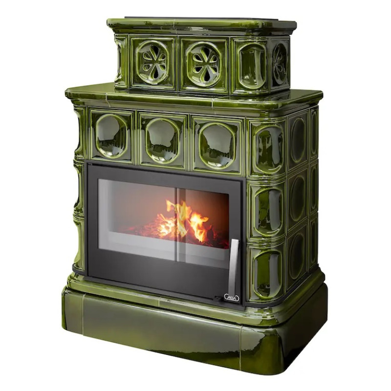 Kachlová kamna ABX Karelie kachlový sokl černý korpus, opláštění kachle zelená