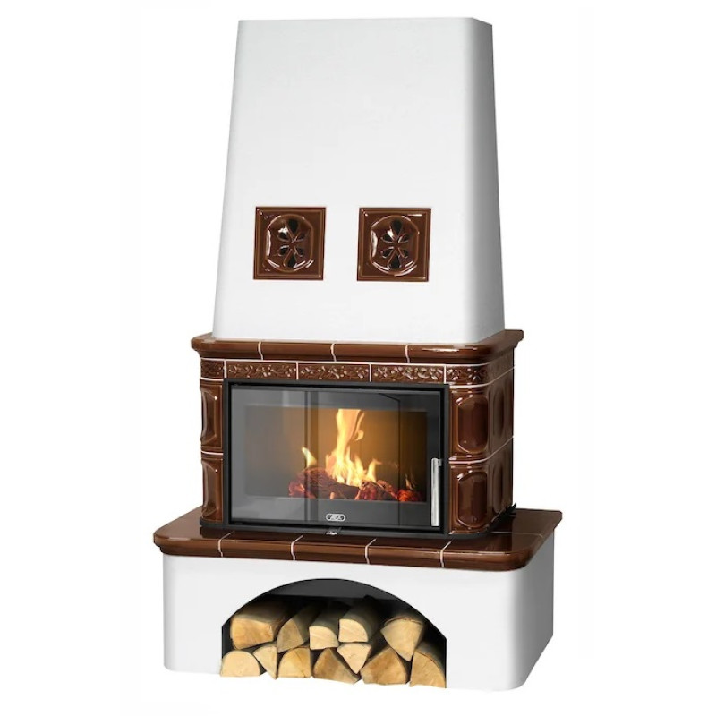 Kachlová kamna ABX Laponie exklusive, černý korpus, opláštění kachle hnědá