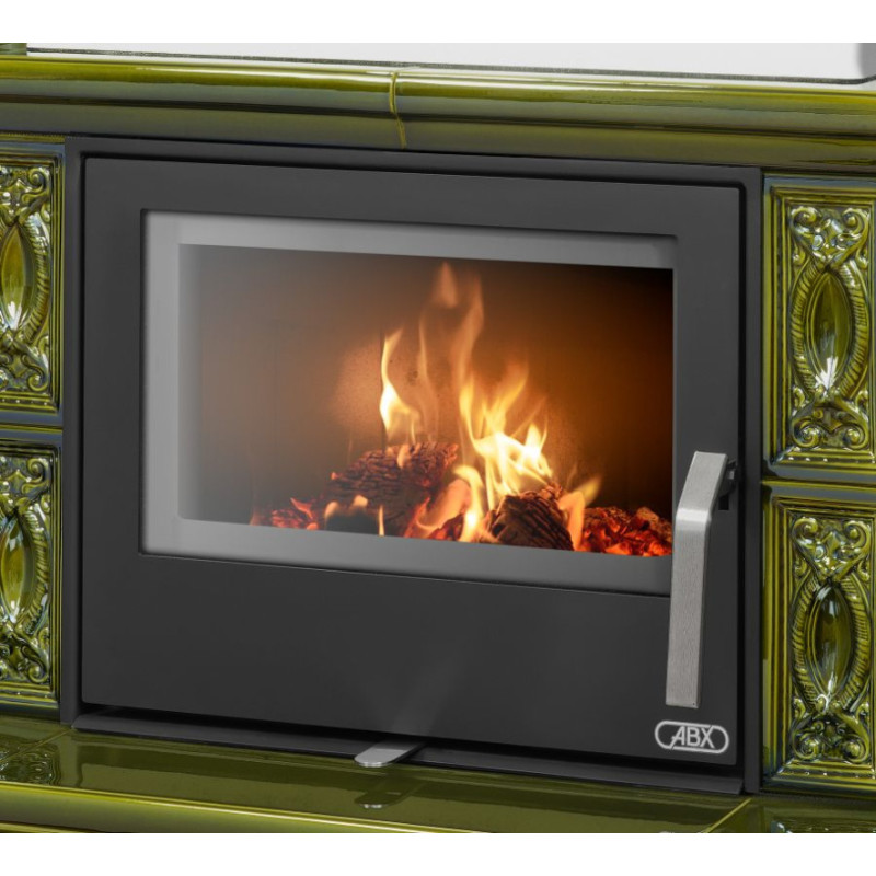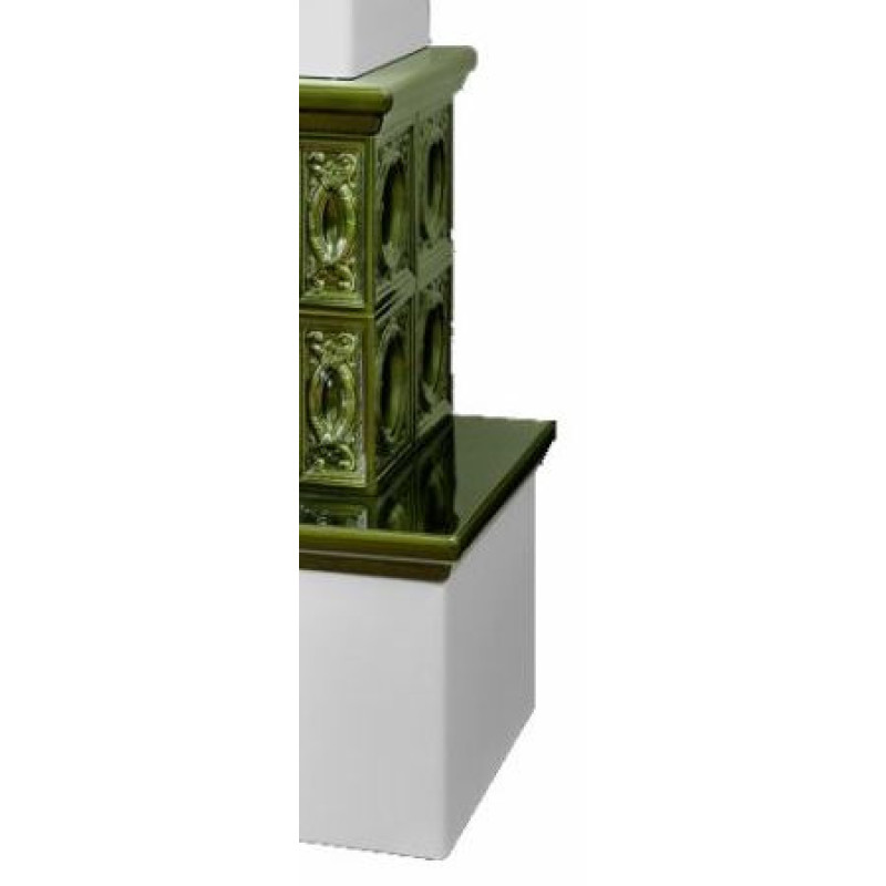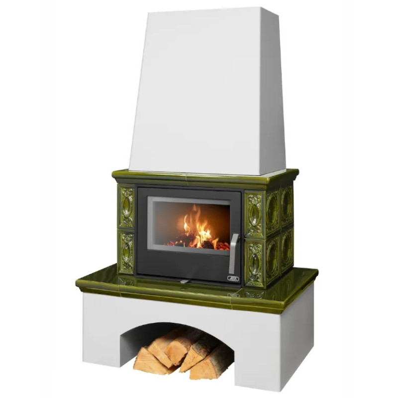Kachlová kamna ABX Lombardie, bílý sokl, černý korpus, opláštění zelená kachle