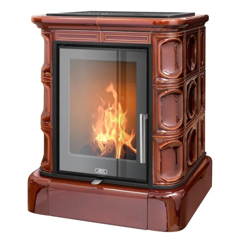Kachlová kamna ABX Marina exklusive, kachlový sokl, černý korpus, opláštění kachle hnědá