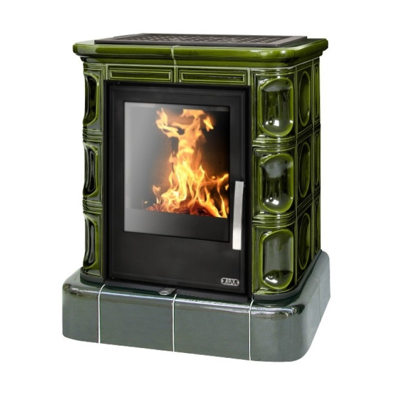 Kachlová kamna ABX Marina s výměníkem, kachlový sokl zelená