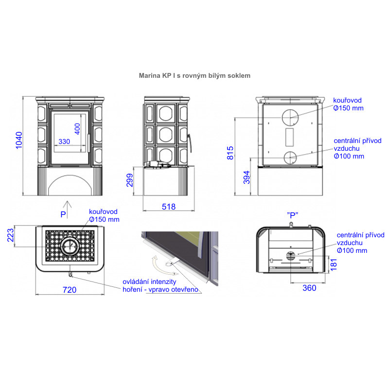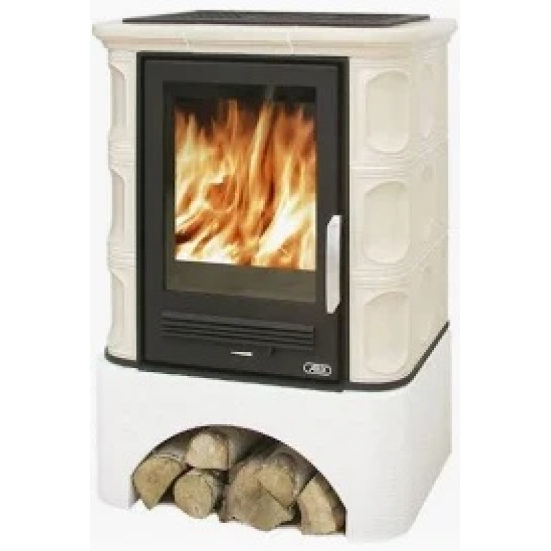 Kachlová kamna ABX Marina s výměníkem 6,9kW., bílý sokl, černý korpus, opláštění kachle písková