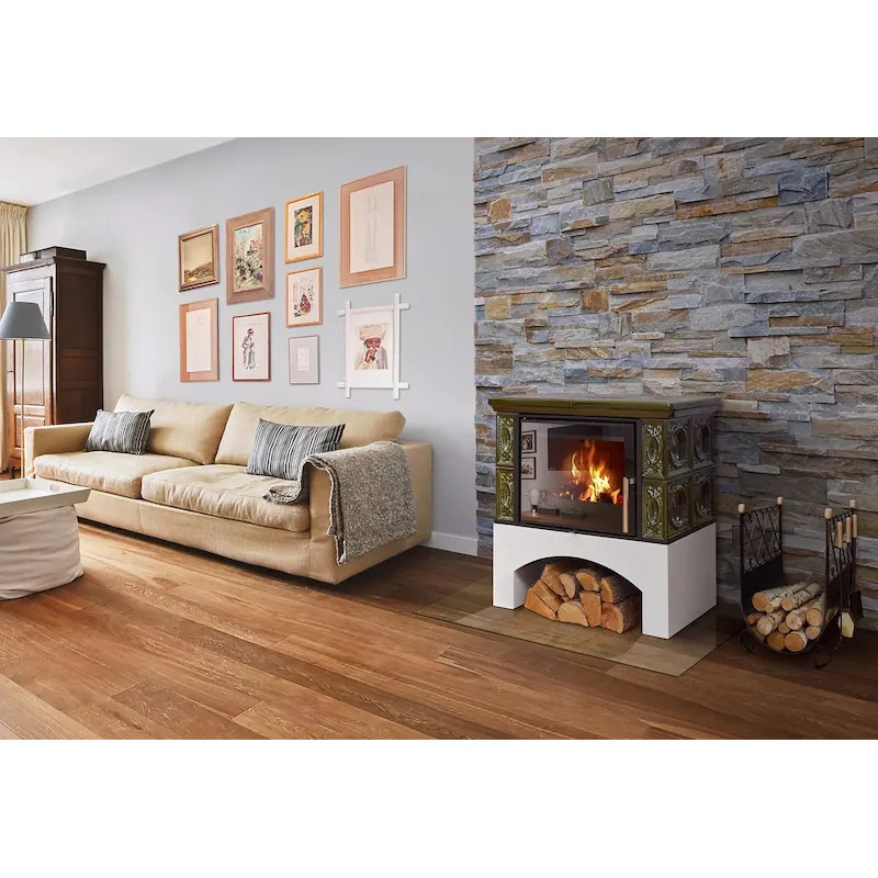 Kachlová kamna ABX Panonie exklusive, rovný sokl, černý korpus, opláštění kachle zelená