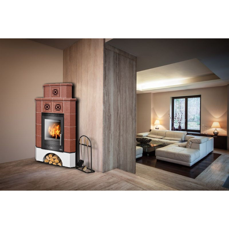 - Kachlová kamna speciálně konstruovaná do rohu místnosti.